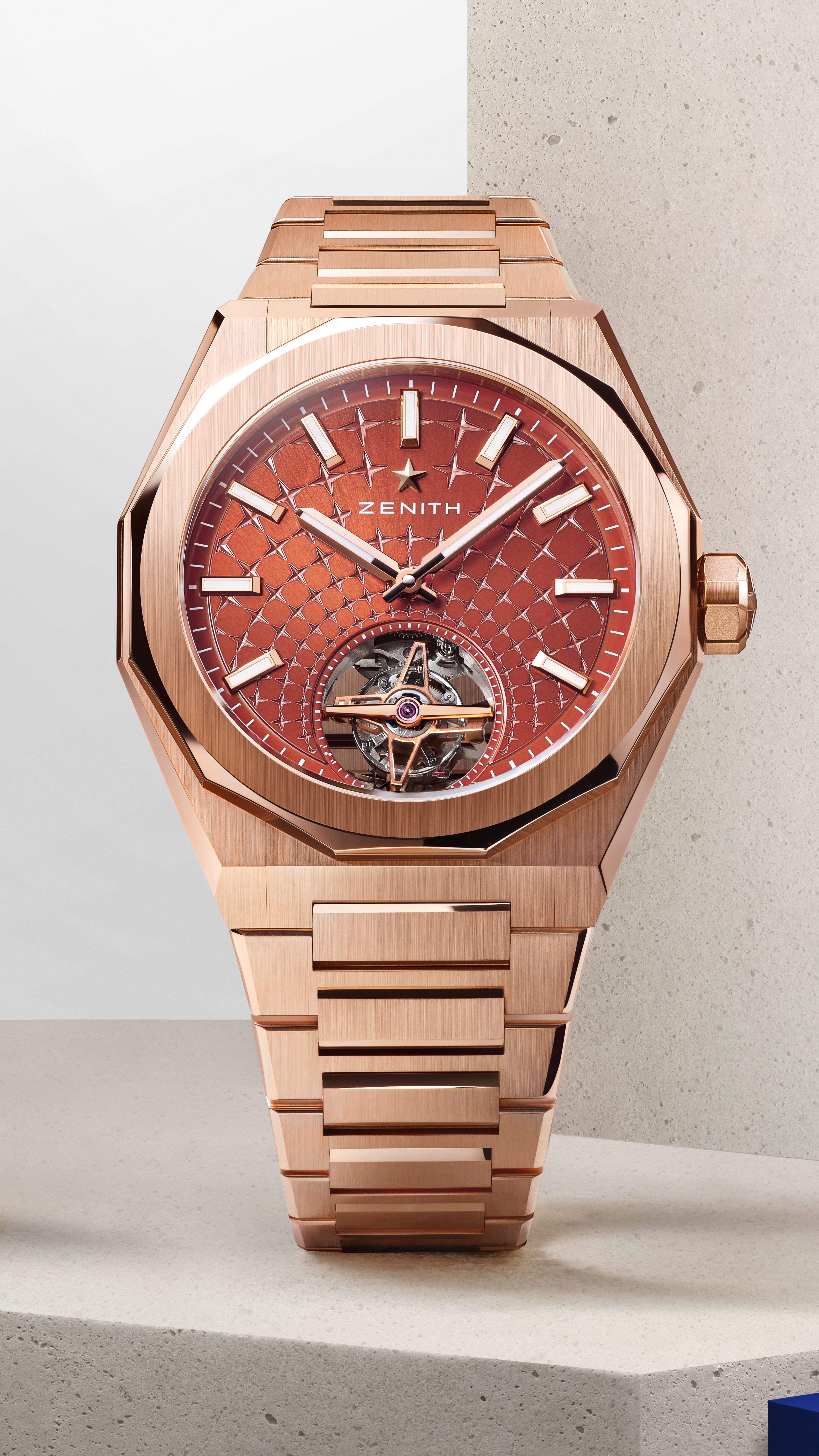 Le Locle, October 22, 2025 – Introduced in 2022, the ZENITH DEFY Skyline has rapidly established itself as one of the Manufacture’s contemporary icons. With its bold lines, integrated architecture, and distinctive technical edge, it has since been offered in numerous iterations exploring a wide spectrum of complications and materials. Today, ZENITH elevates the DEFY Skyline to new heights of refinement: for the first time, the DEFY Skyline Tourbillon is crafted entirely in radiant rose gold. Its deep brick-red dial pays direct tribute to the historic ZENITH Manufacture in Le Locle, echoing the distinctive red-and-white brickwork and forging a tangible link between the brand’s heritage and its most cutting-edge creation.