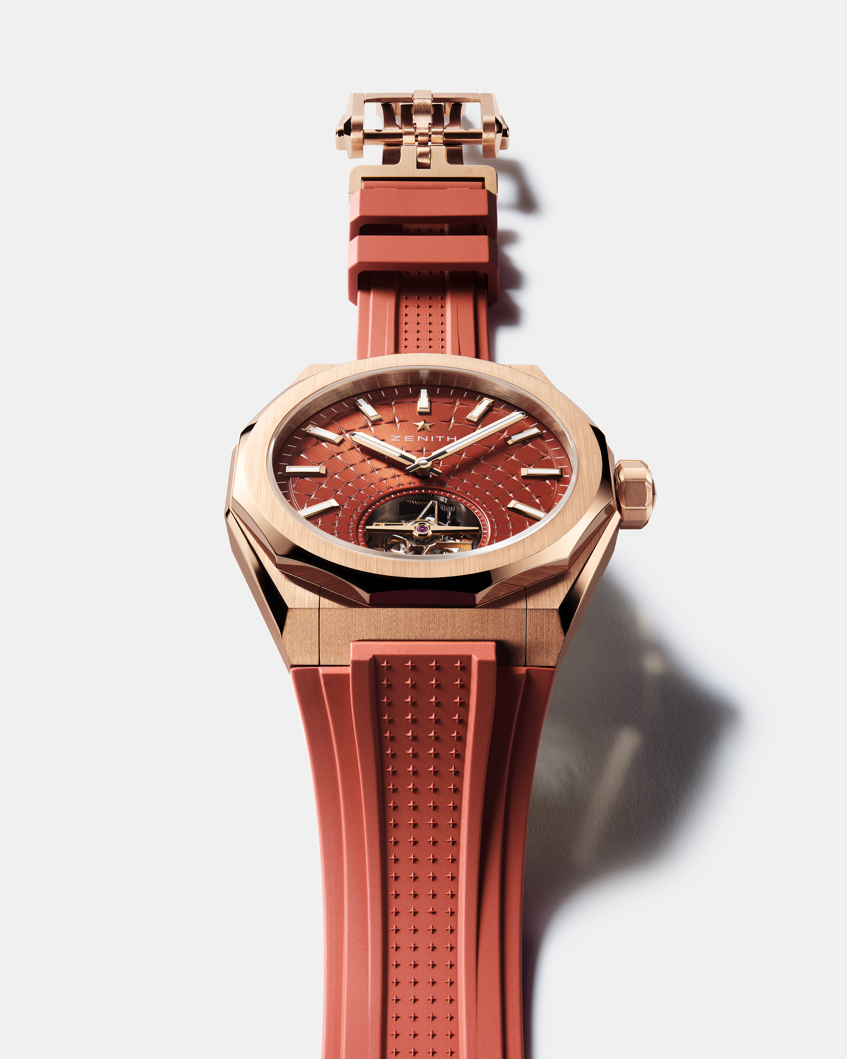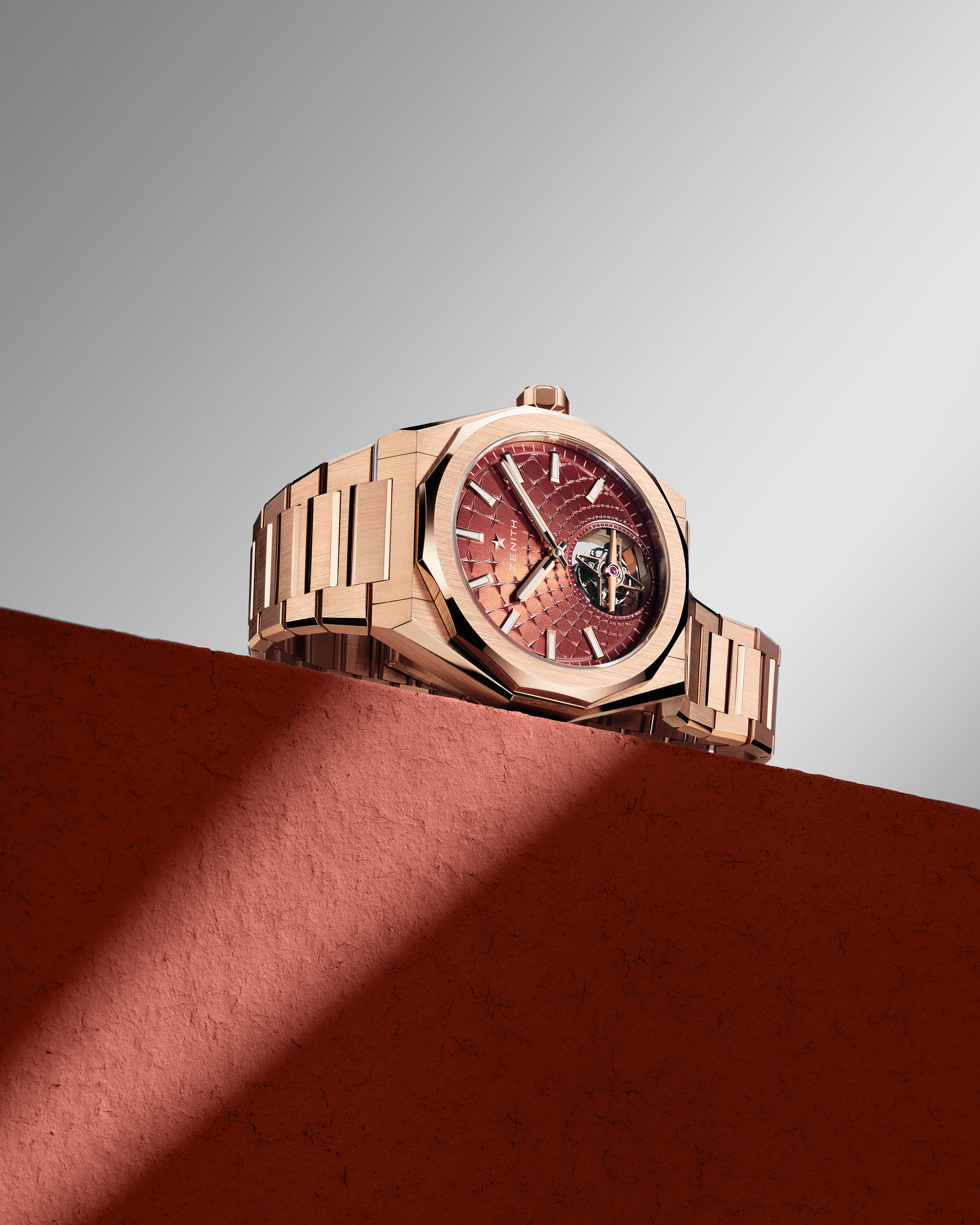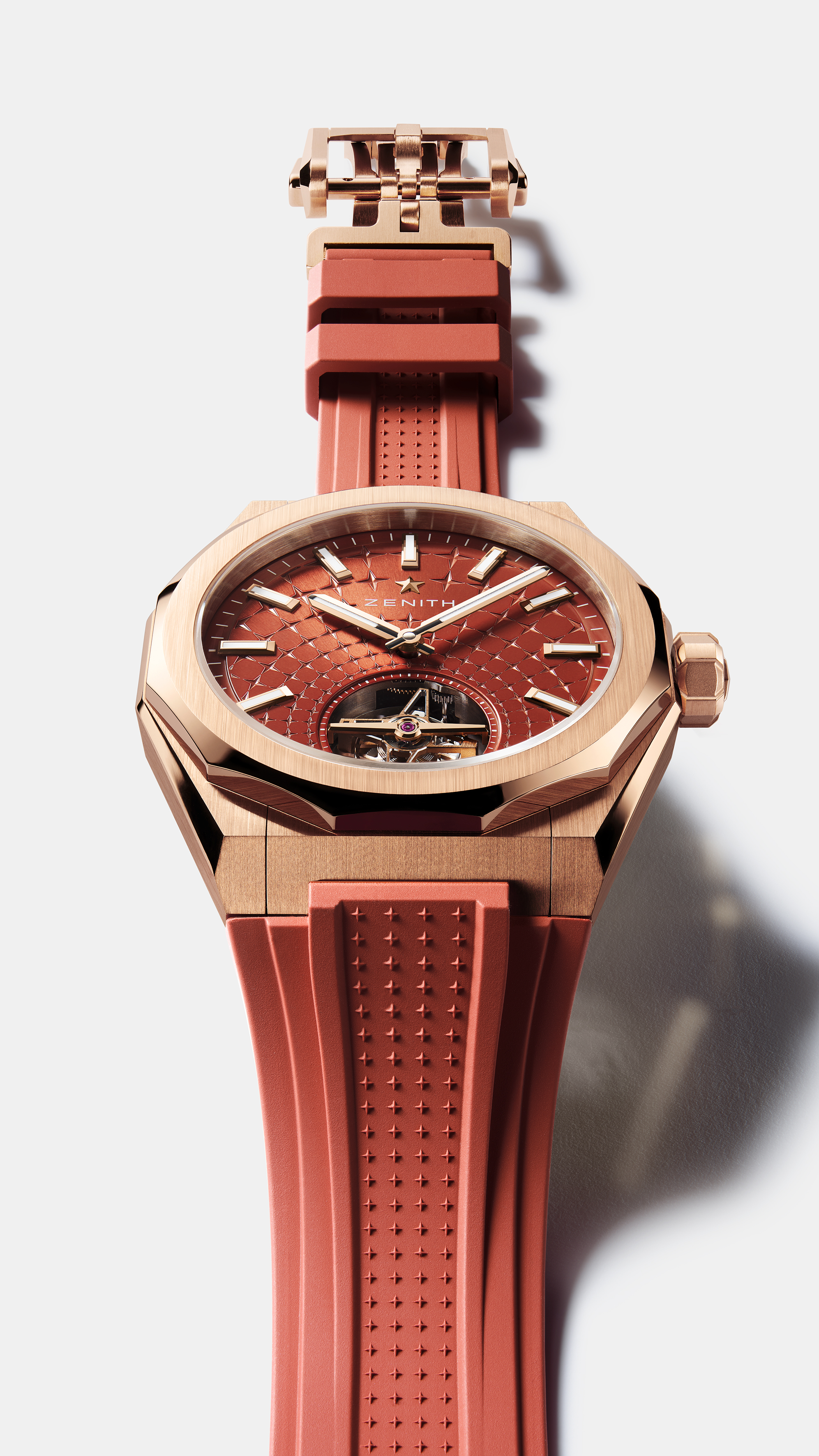 This exclusive version is delivered on an integrated rose gold H-link bracelet, perfectly tapering from the case to the folding clasp, ensuring exceptional comfort. True to the DEFY Skyline spirit, versatility is key: the timepiece also comes with an additional brick-red rubber strap, perfectly matching the dial’s deep tone. Both can be exchanged effortlessly thanks to ZENITH’s intuitive quick-change system that requires no tools.
